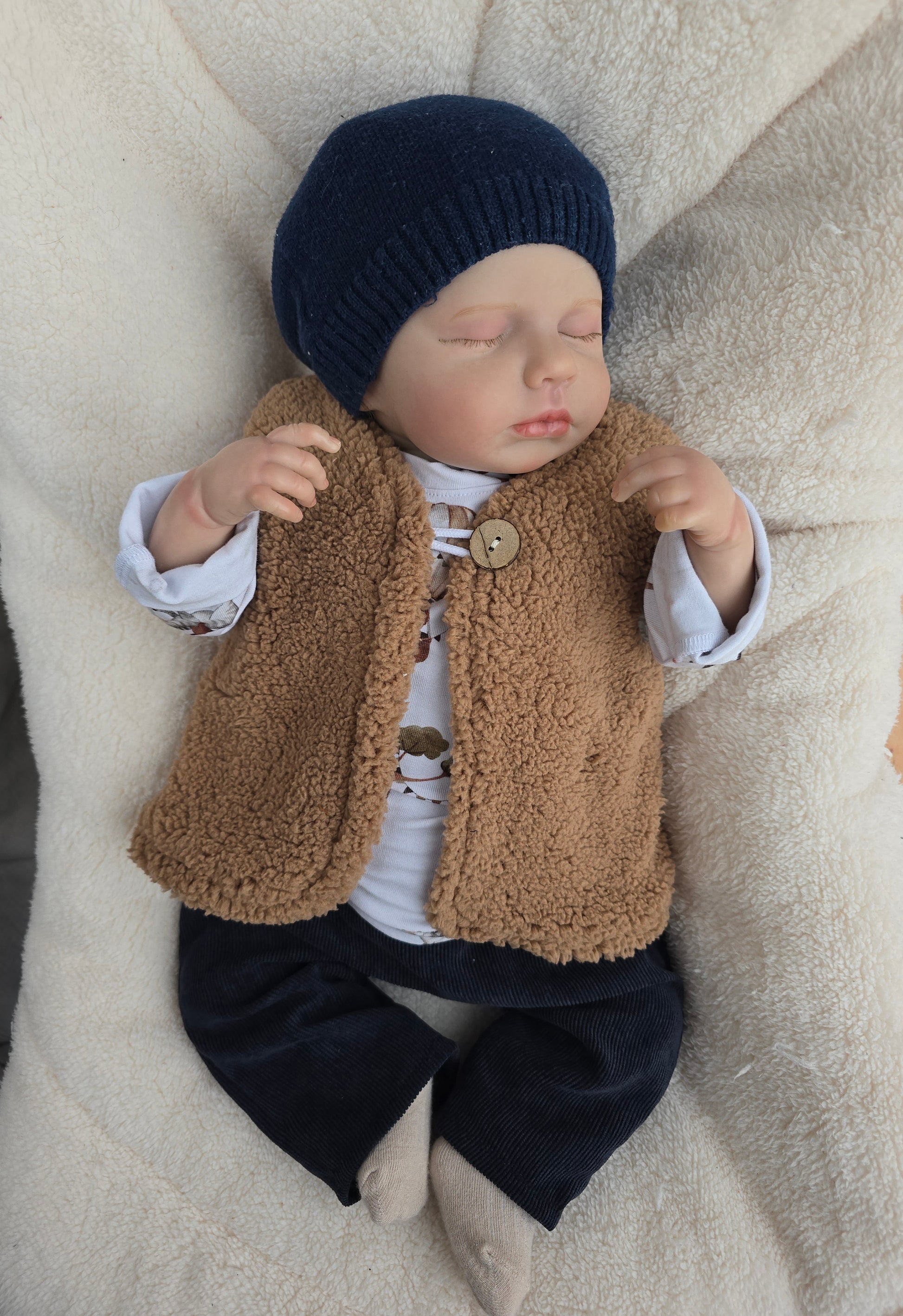 Die liebevoll gestaltete Weste umhüllt dein Kind sanft und sorgt dafür, dass es sich immer geborgen und sicher fühlt. Ideal für Spaziergänge im Park, Abenteuer auf dem Spielplatz oder gemütliche Stunden zu Hause – unsere Teddy Weste ist vielseitig einsetzbar und ein absolutes Must-Have in der Baby- und Kinder-Garderobe.